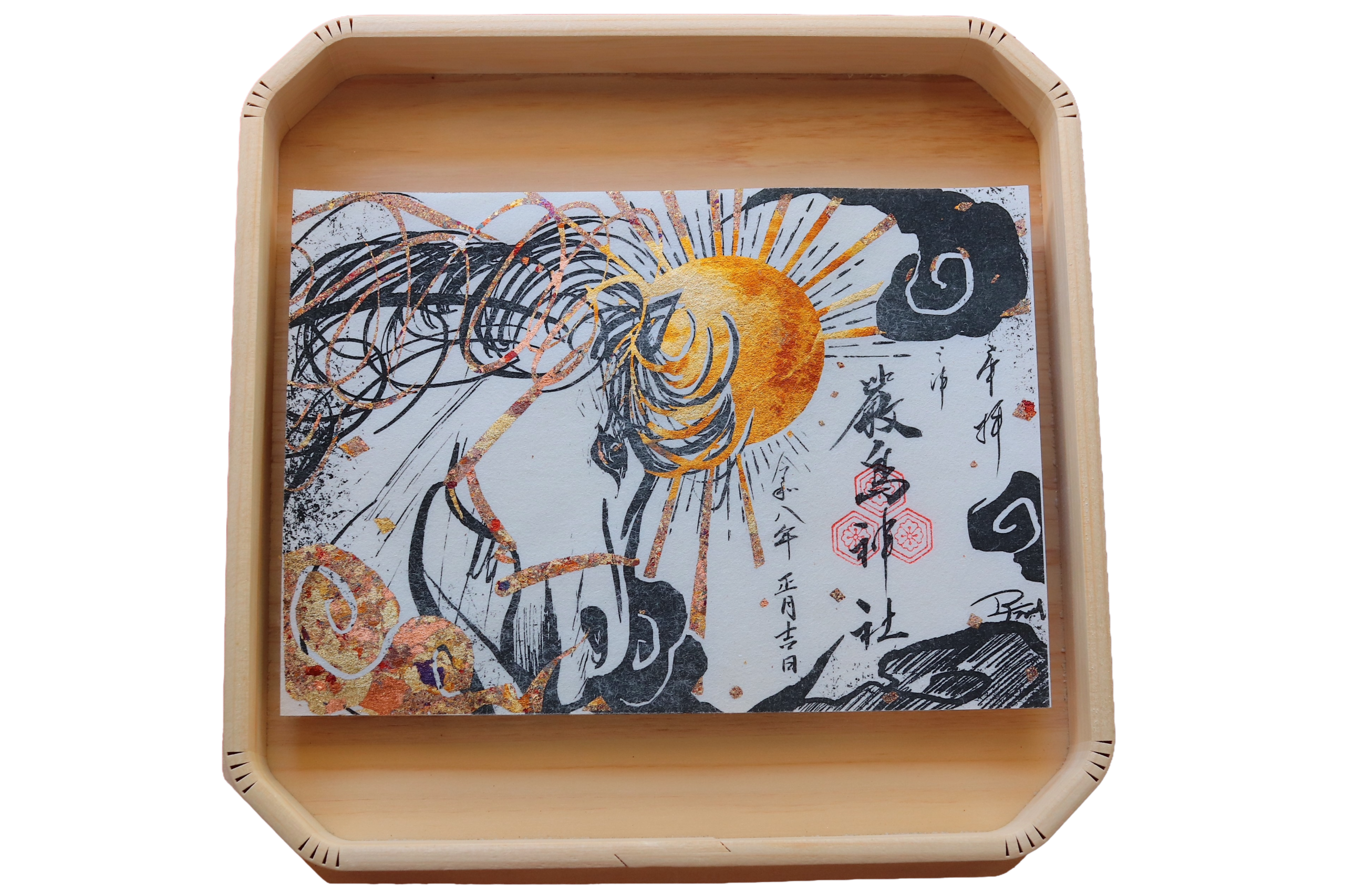 来年の干支「午」をモチーフに、富久ちえりさんにデザインしていただいた正月限定ギルディング御朱印が完成しました。
