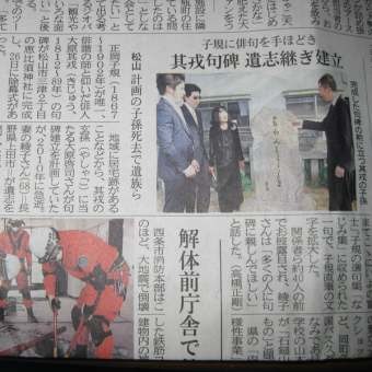 大原 其戎(おおはら きじゅう)句碑 除幕式 愛媛新聞にて