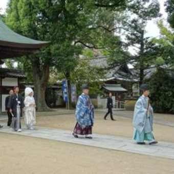 当厳島神社にて結婚式が行われました。秋も深まり少し肌寒い日でありましたが、たくさん着こんでいる新郎新婦さんには丁度良い気候となりました。二人の記念撮影時には少し緊張している様子でしたが、たくさんの親族に囲まれ和やかな雰囲気の中、神前結婚... -