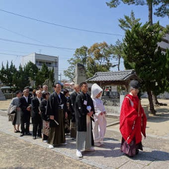 スッキリとした晴れ空の下、当厳島神社にて神前結婚式が行われました。神社での結婚式は新郎様の強い希望だったとか。大事な人生儀礼である「冠婚葬祭」の「婚」…結婚式神社での神前結婚式は婚姻を成立させる大事な儀式で、神社にお祀りされている神様に二... -