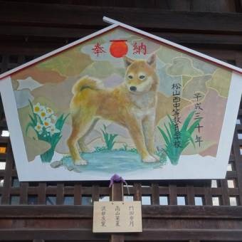 松山西中等教育学校の美術部の生徒が来年の干支である戌(いぬ)をモチーフにした絵馬を奉納されました。非常にリアルな柴犬がデザインされ毛並みの動きまで表現され、今にも動き出すそうです!受験生の合格祈願・在校生の学業成就の願いが込められていま... -