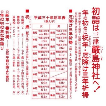 早いもので年の瀬を迎えました。本年も神様・皆様方のお蔭で平穏無事に一年を過ごすことができました。厚く御礼申し上げます。さて、明日から年が明け1月1日0時~2時頃、8時~17時まで厄除け祈祷を行っています。2日以降は通常通り 9時~16時半... -