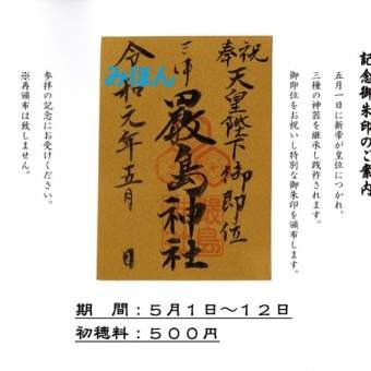 5月1日~12日まで午前9時~午後4時半の間天皇陛下御即位を祝して、記念御朱印を頒布しています。NHKに取材していただき、朝の全国ニュースで流れましたのでご覧になった方もいらっしゃるかもしれませんがこの御朱印が転売されていることが確認さ... -