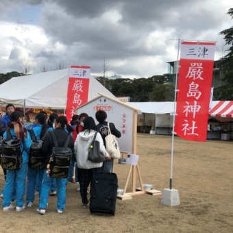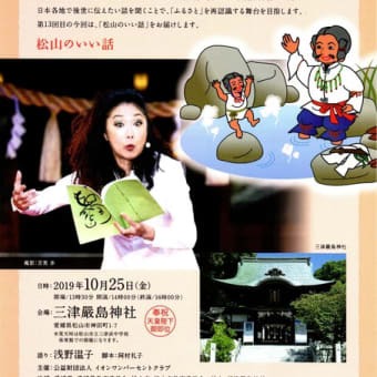 10月25日天皇陛下御即位奉祝行事として【浅野温子よみ語り】を行いました。前日が大雨だった為、準備が整わず開催場所は当厳島神社から三津浜中学校体育館に変更になりました。当初は三津浜中学校の2年生のみ招待する予定でしたが会場が変更になったお... -