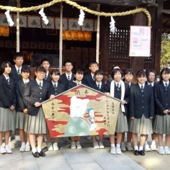 三津厳島神社に、松山西中等教育学校美術部の生徒が来年の干支「子」が描かれた特大絵馬を奉納しました。