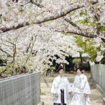 アップが遅くなりましたが・・・境内にて前撮り撮影が行われました。この日はちょうど桜が綺麗に咲いておりただでさえ美しい和装の衣装がさらに映えました。はじけるような二人の笑顔にこちらも幸せな気持ちになりました。二人の思い出の場所になれば幸い... -
