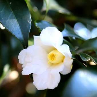 白椿の侘助が開花しました。