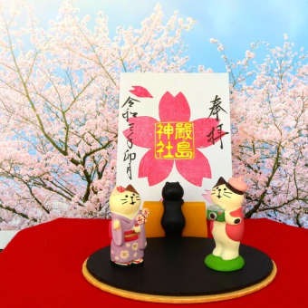 カメラをぶら下げてお参りに来られる方が増えてきました。境内の桜は散ってしまいましたが、満開の桜の前で記念撮影できるように撮影用スタンドを準備しています。御朱印やお守りなどを置いて、お楽しみください。 -