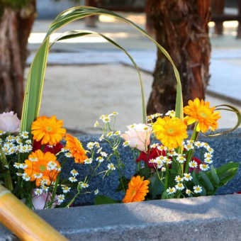 花手水のお花が入れ替わりました。正月に「花乃真央」さん1月8日から「新田高校華道部」の皆さん1月22日から「フラワーショップ小谷」さんに花手水の奉納をしていただきました。地元三津浜のお花屋さん「フラワーショップ小谷」さんはそれから続けて... -