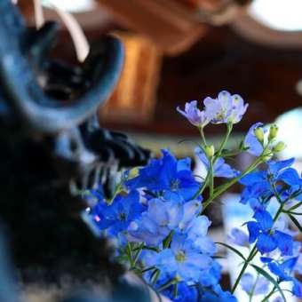 フラワーショップ小谷さんより奉納していただいている花手水毎週替えていただき、誠にありがとうございます。今回は初夏を思わせる花手水となっています。赤いバラの花びらが水面に散りばめられその上にテマリソウとブルーベラドンナが活けてあります。ち... -