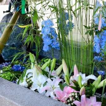 フラワーショップ小谷さんが七夕の短冊をモチーフにした花手水に入れ替えてくれました。 季節感があってとても綺麗です。特に青いデルフィが気に入っています。いつもありがとうございます!7月17日十七夜七夕まつりには竹に短冊をつけて、願い事が... -
