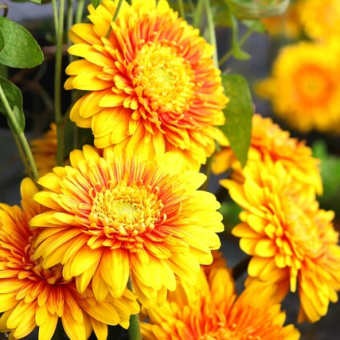 花手水のお花をフラワーショップ小谷さんが入れ替えてくれました。今回のお花はスチールグラス、ワイルドオーツ、ビタミンカラーのイヌラとガーベラ、OHユリ、アジサイです。鮮やかなオレンジがなんとも夏らしく、元気を与えてくれます! -