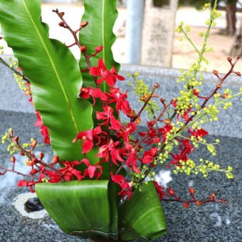 昨日は分厚い雲に覆われて、一瞬雨もぱらついたかと思えば、午後からは日差しがでて、不思議な転機でした。さて、フラワーショップ小谷さんによる花手水のお花が入れ替わりました。谷渡りの大きな葉にアンブラックの赤とサンキライの黄緑がよく合います。... -