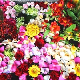 初詣にお越しの方に楽しんでいただけるよう花乃真央さんより花手水を奉納いただきました。誠にありがとうございます。正月らしく松の枝がそそり立ち、色とりどりのお花や花びらが散りばめられ、とても綺麗です。今後の花手水の予定は1月7日14時~新田高...