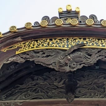 社殿には色々な彫刻が施されています。折に触れて紹介していきます。 社殿正面、唐破風屋根(からはふやね)の下に彫られているのが、鳳凰です。聖人が治める平和な世にのみ姿を表すと言われる、めでたい鳥です。平和な世の中がいつまでも続きますよ... -