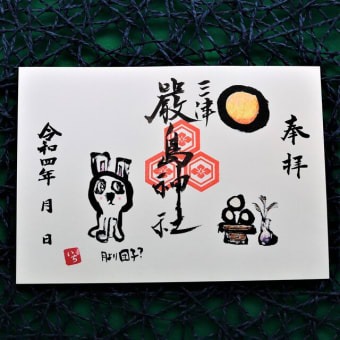 長月(9月)の限定御朱印はお月見をモチーフに「いち咲」さんにデザインをお願い致しました。月にいるはずのウサギがお月見をしています。団子を食べたいのでしょうか。筆で書かれたイラストがほっこりさせてくれます。原画は和紙を使ったちぎり絵で色付... -