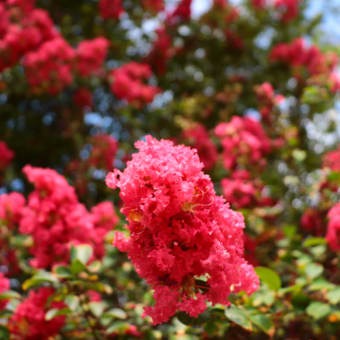 猿も滑って落ちてしまうほどツルツルの樹皮の様子からサルスベリと名付けられました。漢字では「百日紅」と書くほど初夏から秋までの長い間、お花を咲かせてくれます。境内には紅白のサルスベリが1本ずつあり、今年は珍しく一緒に花を咲かせてくれました... -