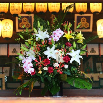 フラワーショップ小谷さんより豪華なお花の奉納がありました。拝殿が一気に華やかな雰囲気になりました。誠にありがとうございます。 -