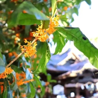 境内のキンモクセイが開花し、いい匂いが漂っています。キンモクセイの甘い香りの成分には、イライラを鎮め、心をリラックスさせる効果があるそうです。香りに癒されながら、お参り下さい。 -