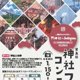 若手神主の団体が主催となりフォトコンを開催しています。 今回のテーマは「神社と四季」 応募方法はインスタグラムで @jinja_photocon をフォローしていただき#神社フォトコンわたしと神社 #神社と四季 をつけて投稿してください。気軽に応募できま... -