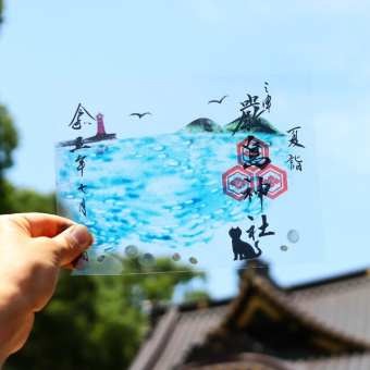 7月の御朱印は三津浜の海をモチーフに田村祐子さんにお願いして、砂絵でデザインしていただきました。 裏が透ける砂絵のクリア御朱印は三津らしい海に灯台と山、それを見つめる猫。貝は本物を使用しています。恐らく砂絵の御朱印は当社が初めてではな... -