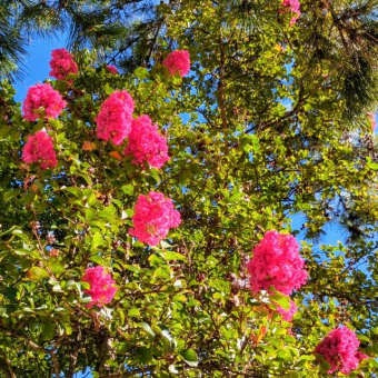 暑い日が続いていますが、いかがお過ごしでしょうか? さて、境内にある赤いサルスベリ今年は勢いよく咲いて青空によく映えます!隣の白いサルスベリの開花が待ち遠しいです。 -