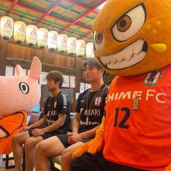 8月26日の愛媛FCホームゲーム「フジサンクデー」開催を前に茂木 駿佑選手、木村 卓斗選手、オーレくん、フジ公認キャラクターハッぴぃが参拝に訪れ、必勝祈願の御祈祷を致しました。参拝後は祈願絵馬に追加でサインを書き記念撮影が行われました。J2昇格に... -