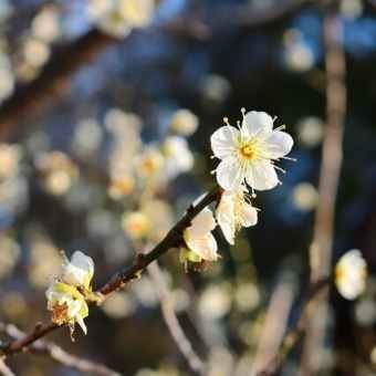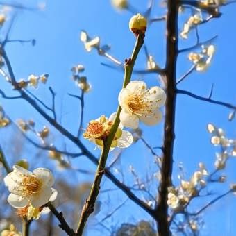 境内の中になる梅をこよなく愛された菅原道真公を祀る「三津天満宮」のそばに御祭神にちなんで植えています。今年も綺麗に咲いてくれました。 -