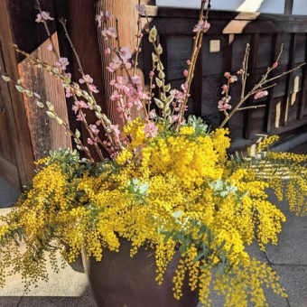 ミモザとハナモモ、ネコヤナギのお花を奉納いただきました🌸