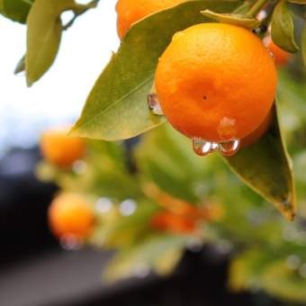 まとまった雨が降った松山。水不足が続いていますので、ありがたい天の恵みとなりました。神門前にある橘も嬉しそうです。この橘は京都御所の紫宸殿の右近の橘、左近の桜に倣って植えています。 -