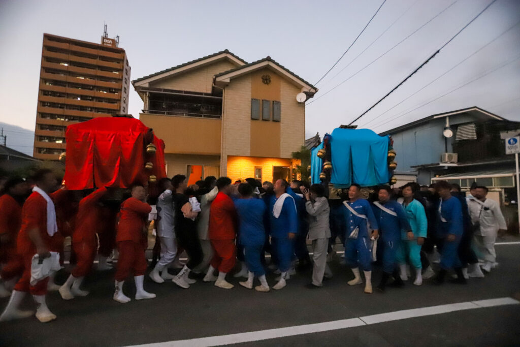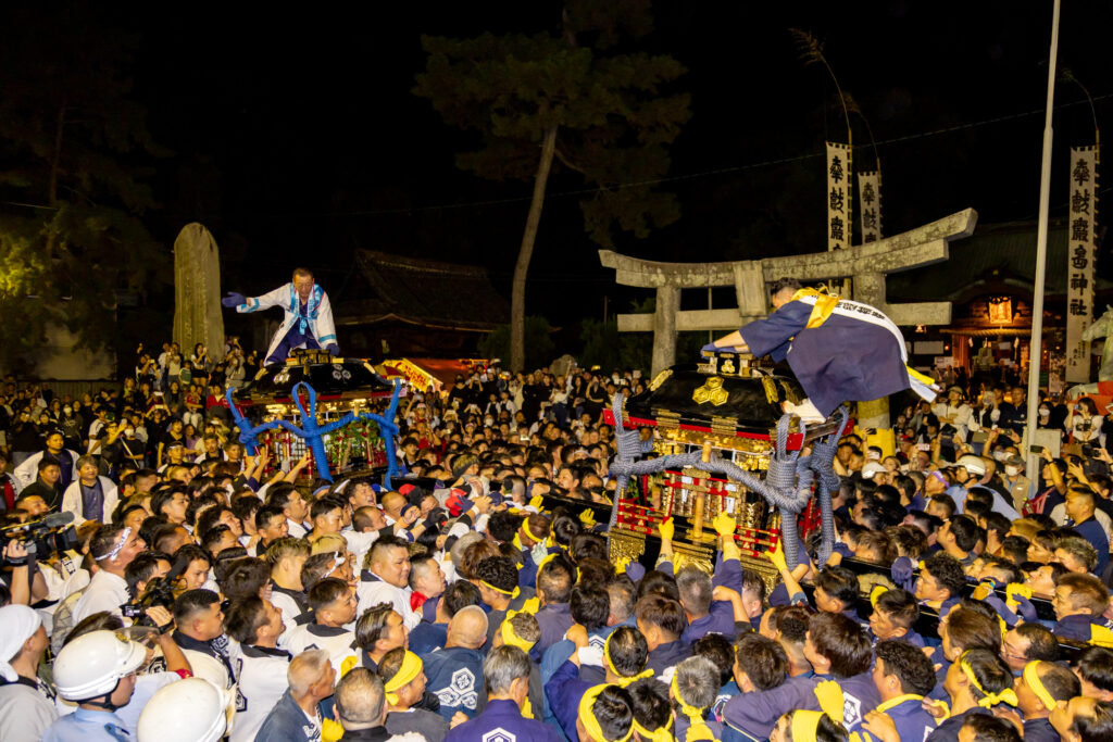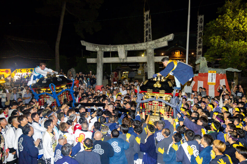 続いて午前1時には「宮出し」が行われ、けんか神輿とも称される神輿の鉢合わせが行われました。