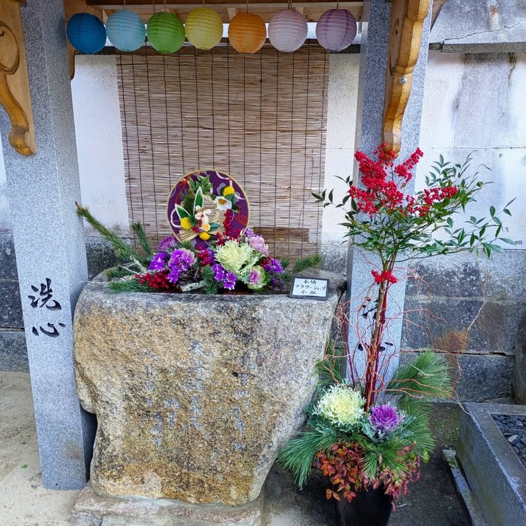 フラワーショップ小谷様より正月に向けての花手水を奉納頂きました。