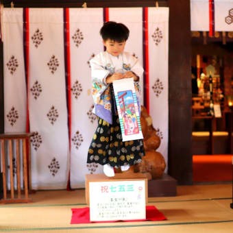 七五三の御祈祷の後、碁盤の儀を行い記念撮影をしてもらっています。