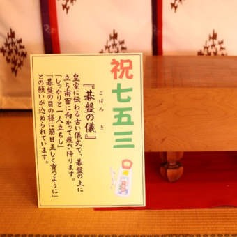 皇室では七五三の当たるものとして「碁盤から飛び降りる」という儀式が行なわれています。