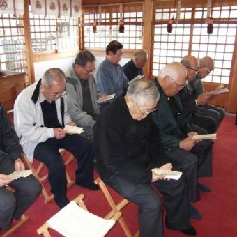 いつも通り恵美須神社(えびすじんじゃ)の総代と崇敬会の皆様が参列されました。初めにお祓いをした後、皆で大祓詞を奏上し、祝詞(のりと)を奏上致します。