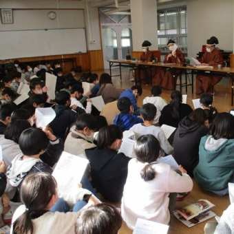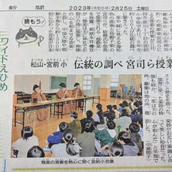 6年生100人ほどの前で3年ぶりとなる雅楽の授業を行いました。