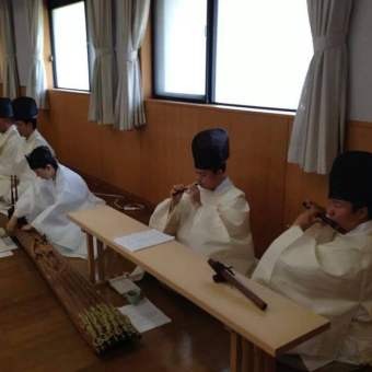 10月30日の愛媛県神社庁例祭・神宮大麻暦頒布始報告祭の練習も行い、お蔭様で無事伶人の役目を務めることが出来ました。