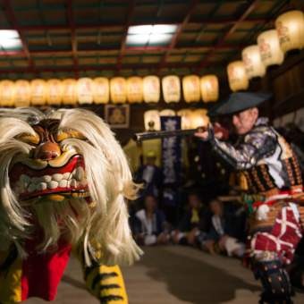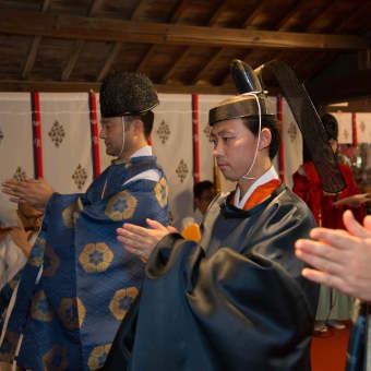 拝殿にて古三津虎舞保存会による「虎舞(とらまい)」が奉納されました。