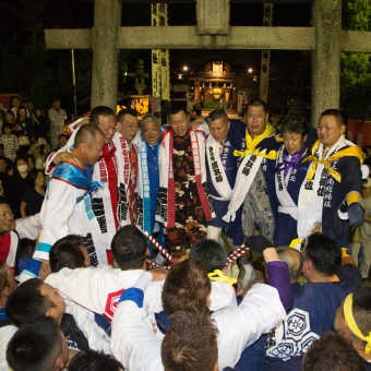 宮出し後、 町内にご利益を与えた神輿は神社に帰り、更に鉢合わせを行い本殿に帰っていきます。