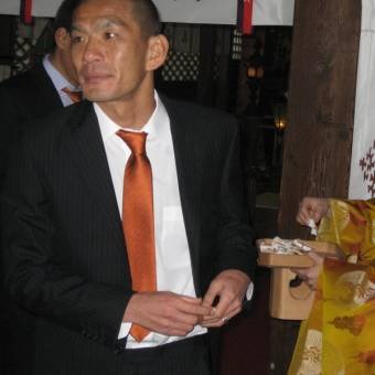祭典終了後、選手の皆さんに勝守(かちまもり)をお渡し致しました。地元愛媛県は三津出身の大木選手、今年も頑張って下さい!