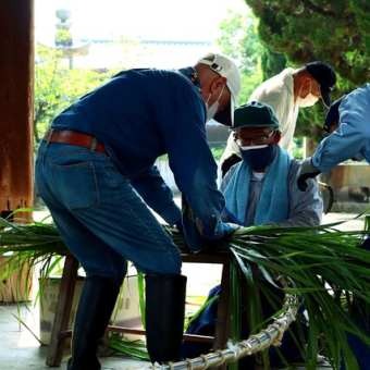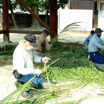 明日から夏越祭を迎えるにあたり、総代さんが茅の輪を作ってくれました。