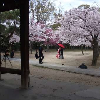 本日も満開の桜の下で結婚式の前撮り撮影が行われました。