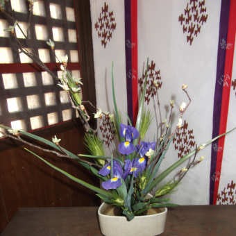 香川ひろこさんによる献花の花材は、やまなし、アイリス、ムギです。