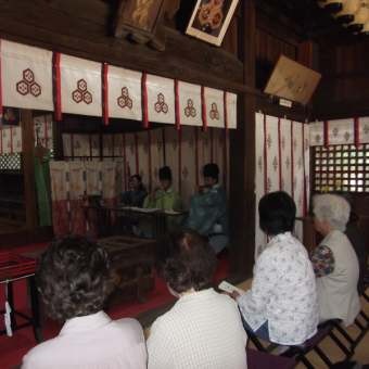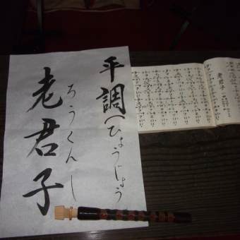 その後、雅楽奉納(ががくほうのう)。今月は目出度い時に演奏されることの多い、平調 老君子(ろうくんし)。