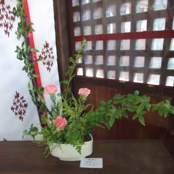 今月の献花はソケイ・カーネーション・ソリダスターです。