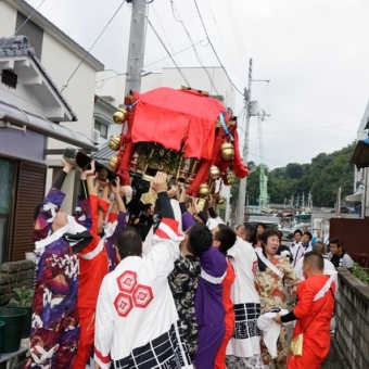 神様の乗り物である神輿が町内を巡り御利益を与える巡町では