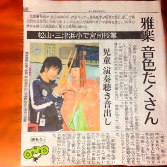 2月21日付けの記事に三津浜小学校 雅楽授業の記事が掲載されていました。