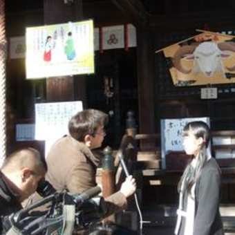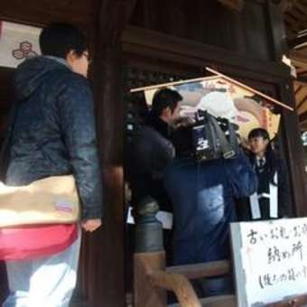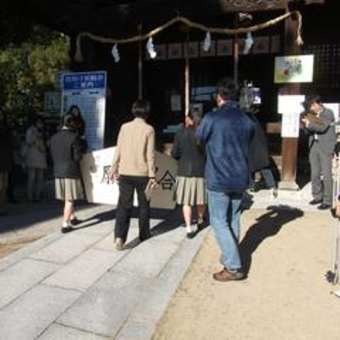 取り囲む取材陣、絵馬の裏側には「合格祈願」の大きな文字。生徒の思いを感じます。