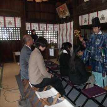 お祓いをして美術部部長が学業成就、合格祈願の祈念を込めて玉串拝礼
