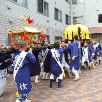 御神威を高めた神輿が神社を出て(宮出し)町内を巡り、町内の皆様にご利益を与え神社に戻ってきます(宮入り)。
